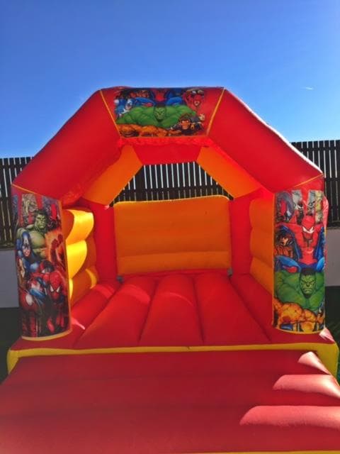 Our red and yellow bouncy castle has velcro panels which means we can change the theme easily.